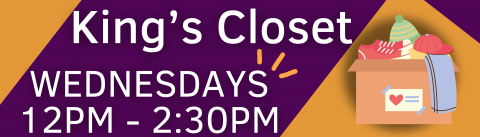 Kings Closet provides access to a closet of personal items each week on Wednesdays from 12:00 pm - 2:30 pm